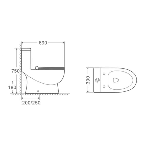 • Skirted design,Concealed trapway makes the surface sleek and won’t trap dirt